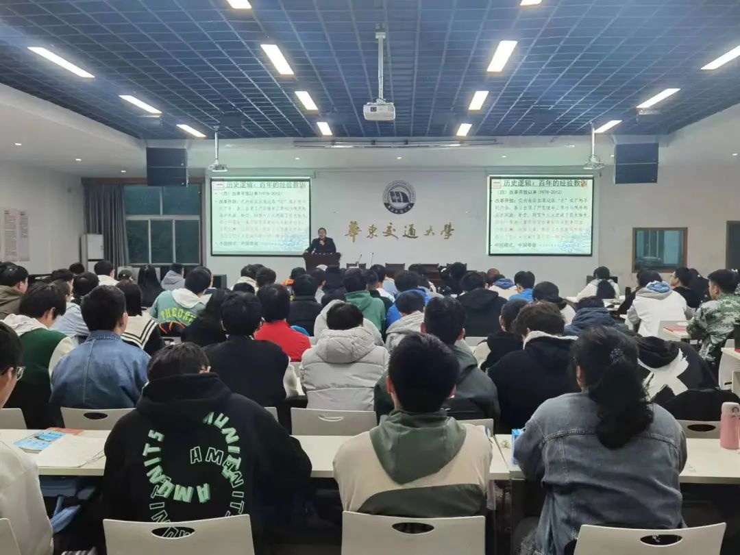 电气学院分党校第44期入党积极分子党课培训班在天佑会堂举行,图书馆馆长、孔目湖学院院长石初军讲授党课第三讲——结合中华优秀传统文化,谈“两个确立”的决定性意义。石初军由党的二十大报告引出“两个确立”的决定性意义,并提出要坚决捍卫“两个确立”、做到“两个维护”。随后,石初军从历史逻辑,理论逻辑和现实逻辑出发,结合中华优秀传统文化,具体分析“两个确立”的决定性意义。