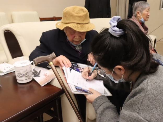 “张奶奶在说到战后的情形时,她那句‘没有一个完整的人’真的让我仿佛看到了战争的缩影,是黑白的、满目断壁残垣的,从她的口中我似乎真实地看到了一个大不相同的时代”21级工自一班李怡泐说,“爷爷奶奶们聚在一起,回忆过往的故事,在谈及如今的发展,都十分动容。作为新时代青年,我们应珍惜来之不易的幸福,将红色基因永续传承下去。”