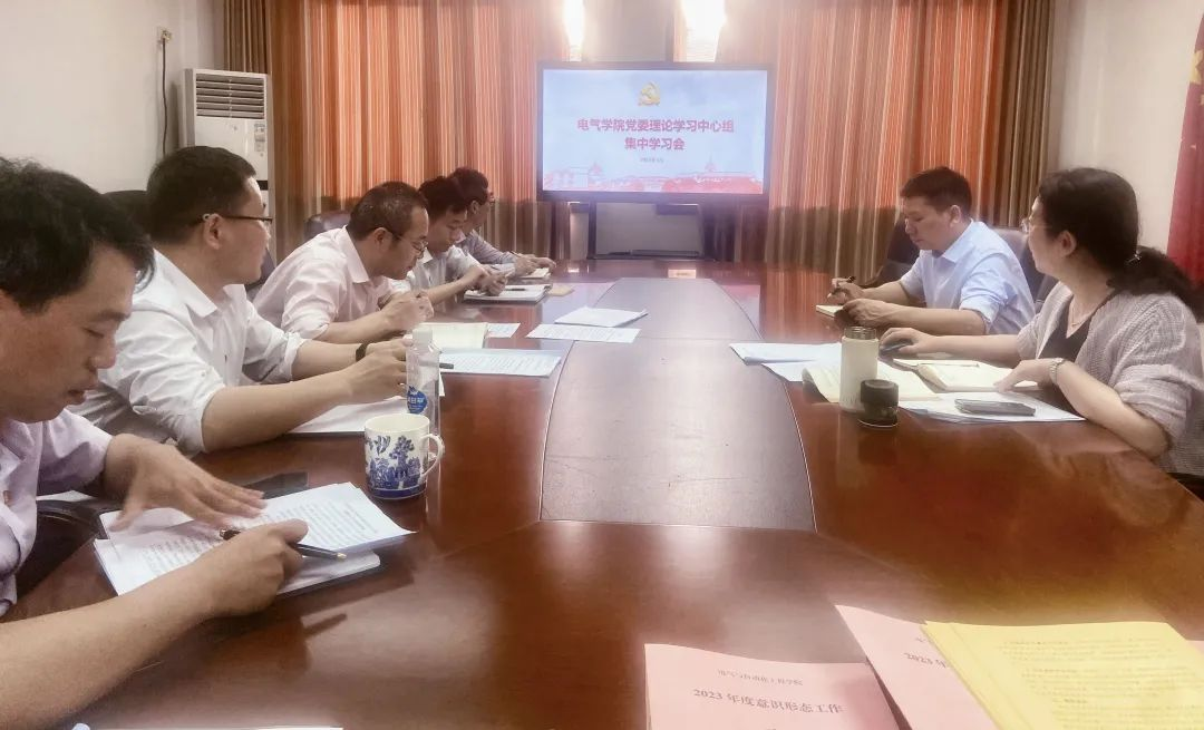 4月17日,电气学院党委理论学习中心组举行2023年第四次集体学习会,集中学习习近平总书记在中共中央政治局第四次集体学习会、在学习贯彻习近平新时代中国特色社会主义思想主题教育工作会议上的重要讲话精神和3月30日中共中央政治局会议精神。学习会由党委书记赵敏主持,全体中心组成员参加。