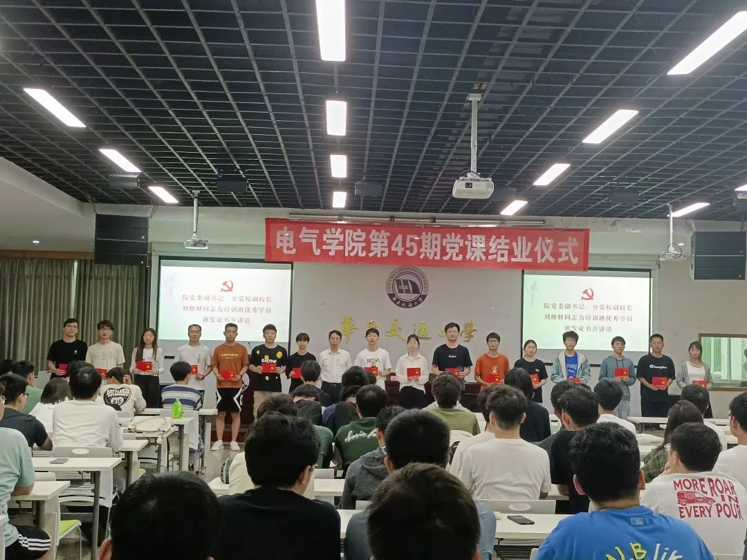 会上,院党委组织员刘佳宣读培训班结业情况,宣布电气学院分党校第45期党课培训班共计40学时的理论课程与实践课程圆满完成并公布了入党积极分子优秀学员名单。