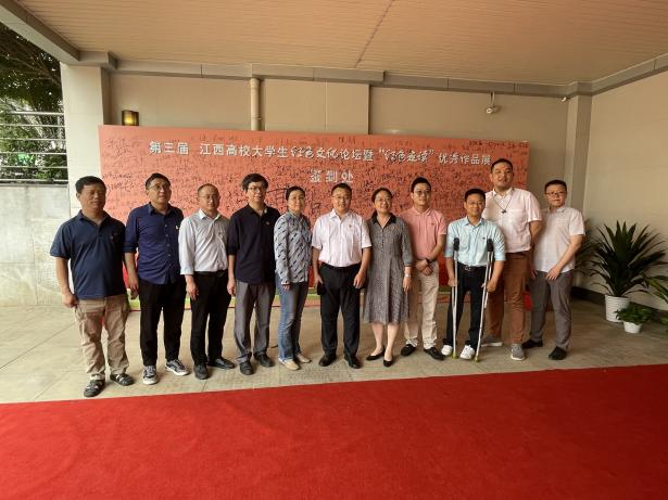 双方前往我校音乐厅,共同参观第三届江西高校大学生红色论坛暨红色走读优秀作品展,接受一场沉浸式红色教育凝聚思想共识。在讲解员的带领下,党员同志们以视听结合的方式深入体会每件作品背后的丰富内涵,深刻感悟江西这片红土地上的红色精神,进一步坚定了理想信念,提升了党性修养。