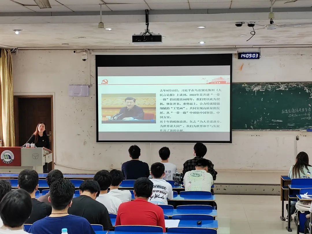 轨道交通信号学生党支部书记刘佳,以“从‘一带一路’感悟中国智慧、中国方案”为主题开展宣讲,从“一带一路”的提出,多角度全方面的学习了这十年来“一带一路”给全球各个国家带来的重大影响。倡导“创新、协调、绿色、开放、共享”的发展观;倡导“开放、融通、互利、共赢”的合作观。