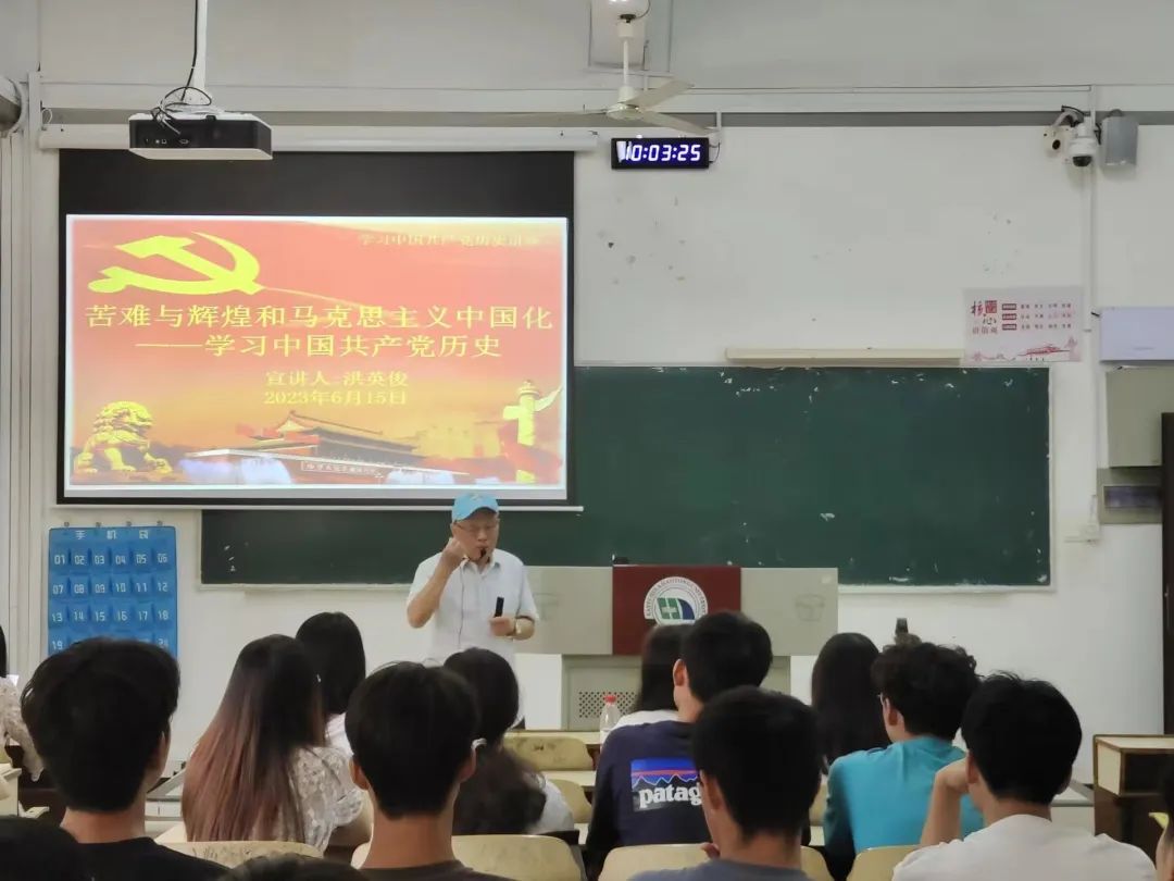 最后,洪英俊结合党的一大到党的二十大的主要内容,简要回顾中国共产党的百年奋斗史,并引用党的二十大报告作结——中国共产党为什么能,中国特色社会主义为什么好,归根到底是马克思主义行,是中国化时代化的马克思主义行。