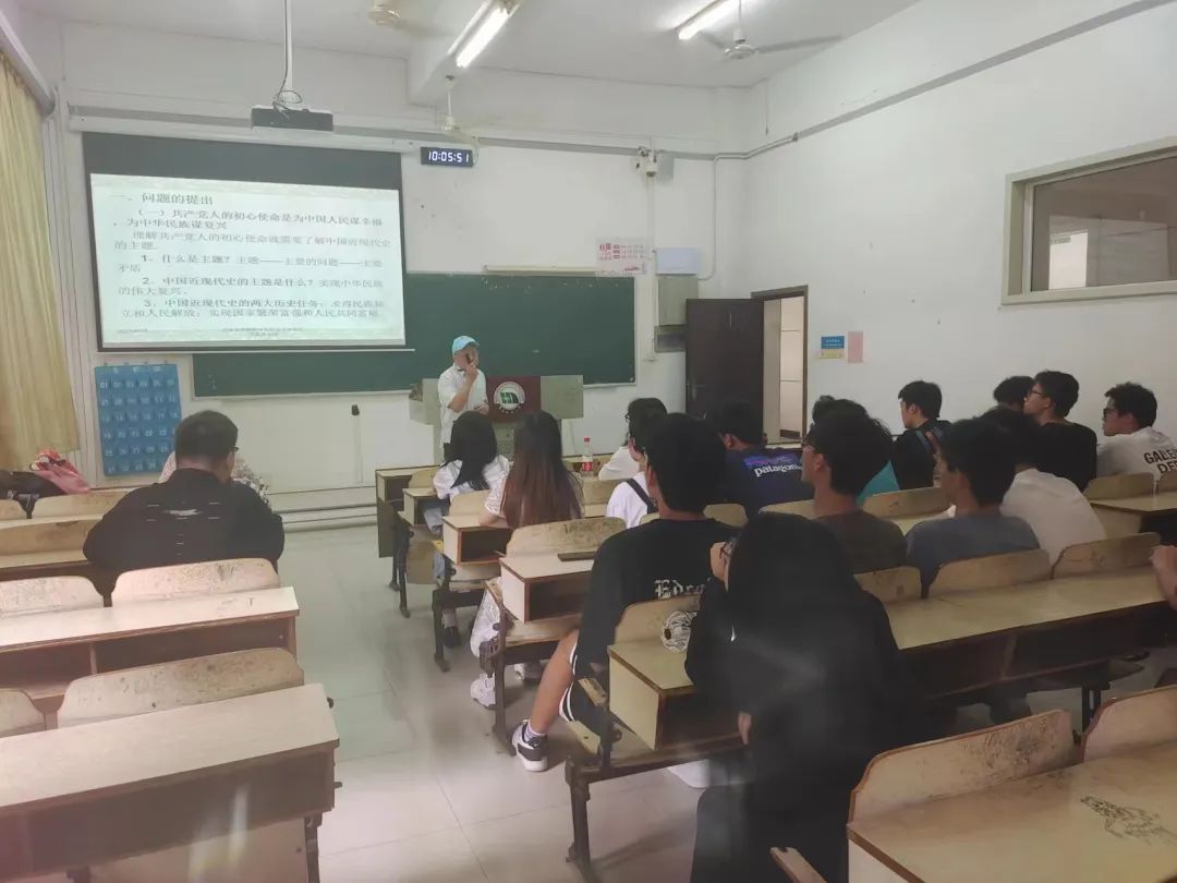 “为什么中国近现代史的主题是实现中华民族的伟大复兴?”洪英俊围绕这一问题,带领同学们回顾了洋务运动、戊戌变法等近代中国救亡图存的运动。经过历史时间线的梳理洪英俊指出,近代中国先进人士对现代化出路的探索最终找到了马克思主义,并由此引入马克思主义中国化的历程。