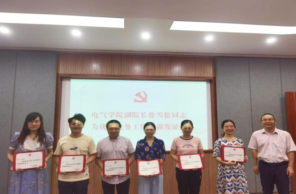 7月3日上午,电气学院举行“两优一先”表彰大会,表彰2021-2023年学院涌现出的优秀共产党员、优秀党务工作者和先进集体。学院全体教工党员和部分学生党员参加大会,院党委副书记刘修财主持会议。