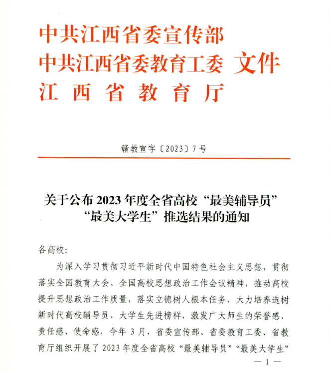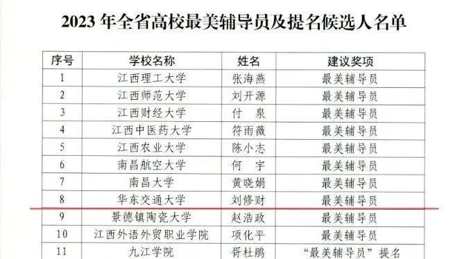 近日,中共江西省委发布文件,我院刘修财老师荣获江西省高校“最美辅导员”荣誉称号。