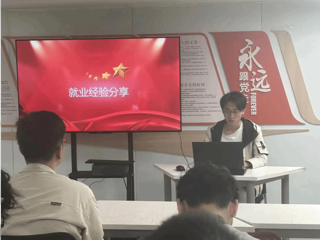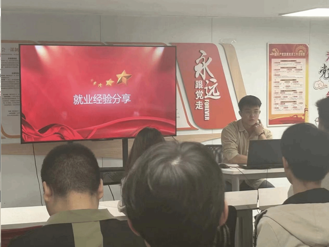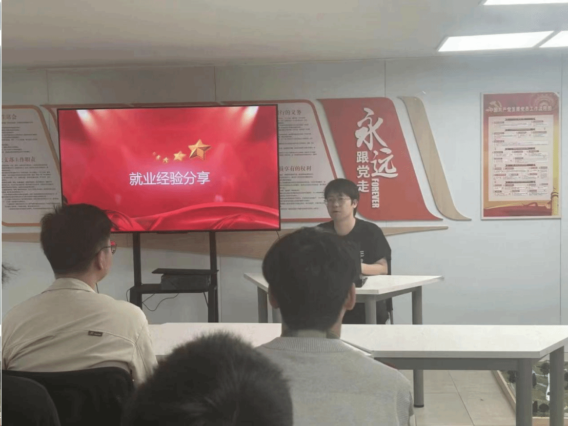 电力牵引学生党支部还开展了以“就业经验分享”为主题的党日活动。此次活动邀请了支部大四年级已完成签约的党员梁礼腾、康海军、甘钦玉三位同志来作为分享人,与支部各位同志分享他们的就业经验和心路历程。活动中他们向大家介绍了校园招聘面试礼仪中的注意事项,分享了自己在求职过程中的经验、如何制作求职简历、如何在面试时能做到从容不迫等方面的技巧,为支部党员未来就业过程中可能遇到的问题做出了清晰完整的解答。