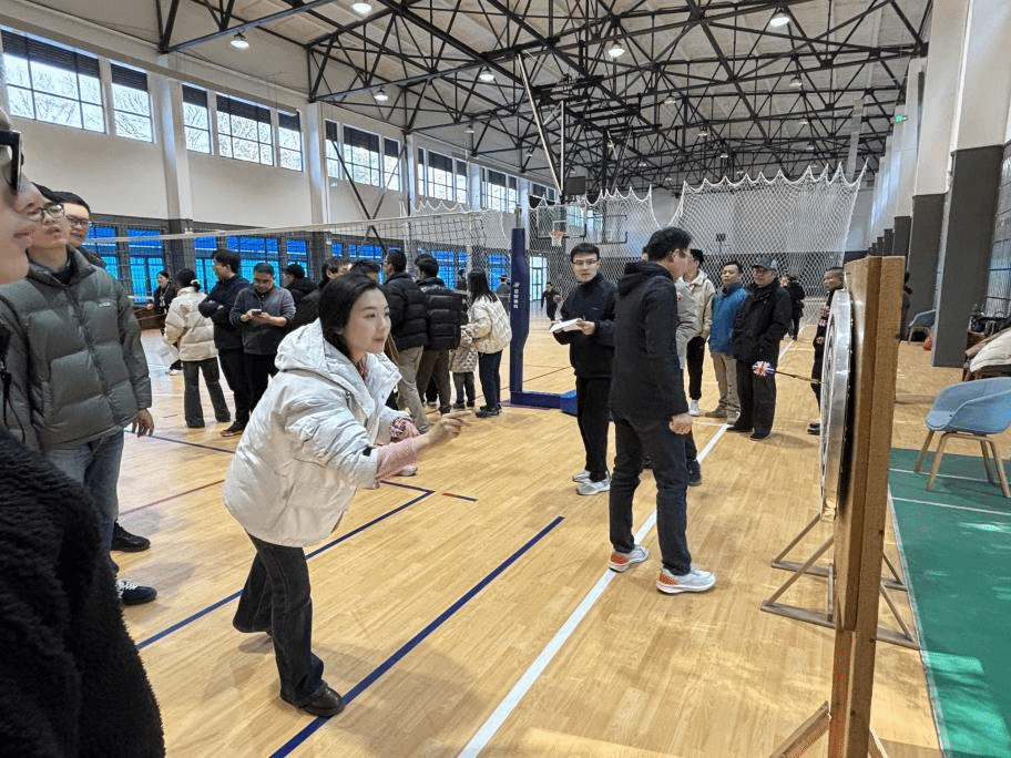 为丰富教职工的校园文化生活,构建一个健康、文明且充满活力的校园环境,增强教师团队的凝聚力与合作精神,促进身心健康发展,电气学院于1月12日在南区风雨球馆成功举办一场别开生面的教职工趣味运动会。本次活动精心设计了包括滚铁环、同心鼓、接力投篮、投壶及飞镖在内的五大项目,吸引了全体教职工的热情参与。这不仅是一场充满乐趣与活力的盛宴,更是一次加深老师间情谊、丰富业余生活的绝佳机会。接下来,就让我们一同回顾那些精彩纷呈的比赛瞬间吧!