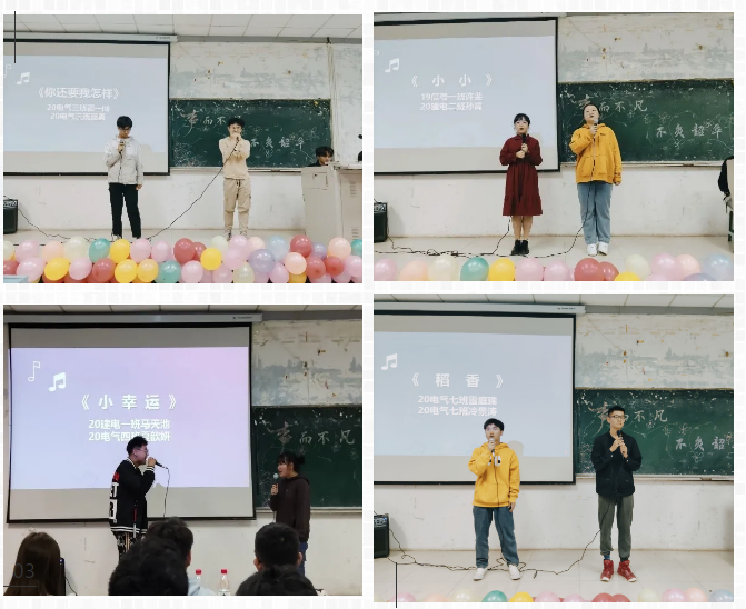 11月14日晚,电气学院青歌赛复决赛于北区31栋116教室进行。此次活动,我们邀请到电气学院学工办沈诗妤老师、土建学院学生会主席易钰清、机电学院学生会主席唐溶键、2019校青歌赛十佳歌手王磊、2019校青歌赛十佳歌手陶昊伟、2019电气学院青歌赛冠军苏比努尔到场并担任比赛的评委。