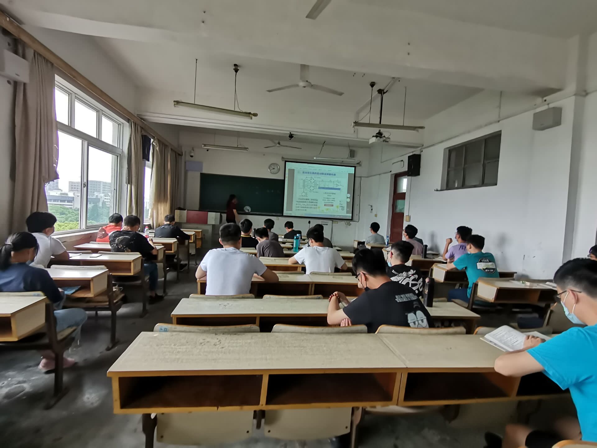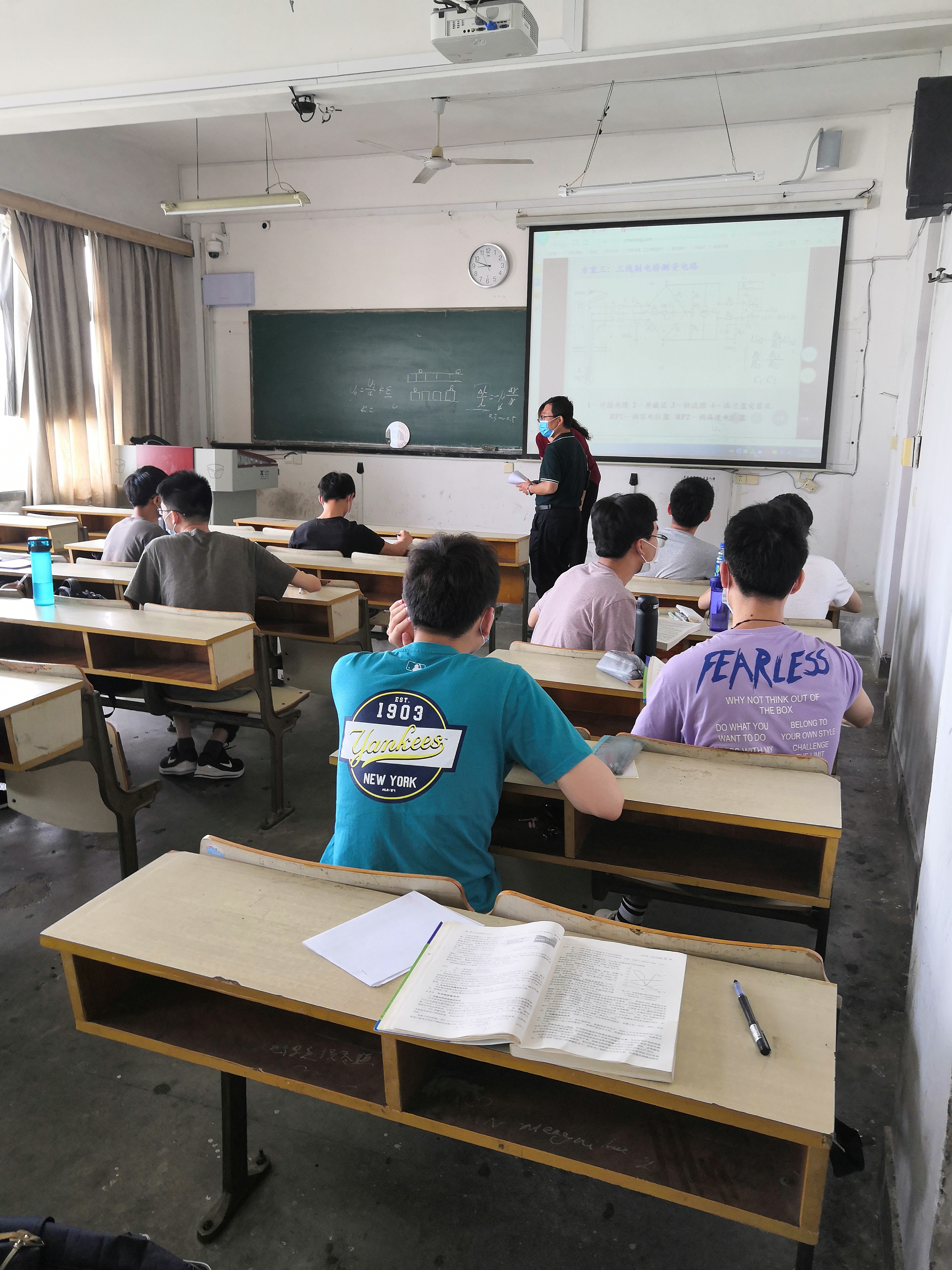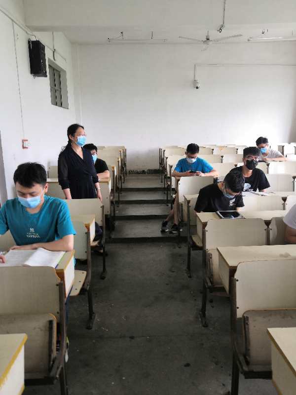 照片里是老师和同学们严守戴口罩、保持距离的规定,有条不紊地进行着课堂。这得益于学院多次研讨部署、制定细致的复课工作方案、统筹推进疫情防控和教学工作,既能在课堂上寻找老师答疑解惑,又能在网课的学习中补充知识点,保证了同学们线上线上同时进行高效、安全的学习。