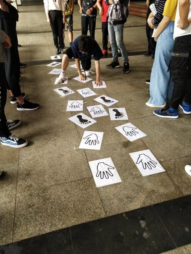 这个游戏让我们感觉到同学们的身手真的是“猛如虎”啊。他们迅疾的跨过一道道代表他们手脚部位的标志,用最快的速度通过赛道。即使不小心走错了,也会用最快的速度重新来过,为了团队的荣誉合作战斗,争分夺秒!