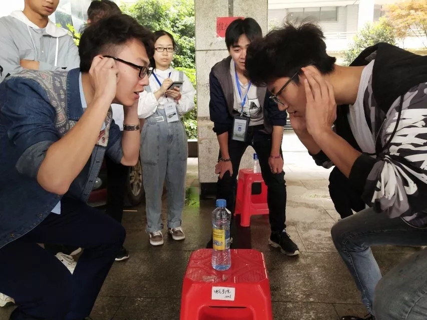 这个游戏主要考验的是同学们的反应能力。在游戏主持人的刻意“捣乱”下,能否抢到杯子,完全就是靠运气和自己本身的超强反应能力!“摸头”、“摸眼睛”、“摸脖子”、“看杯子”、“摸杯子”……由游戏主持人创造的注意力分散方式,让不少参与者都吃到了苦头!果然,我这么优秀,谁与争杯?