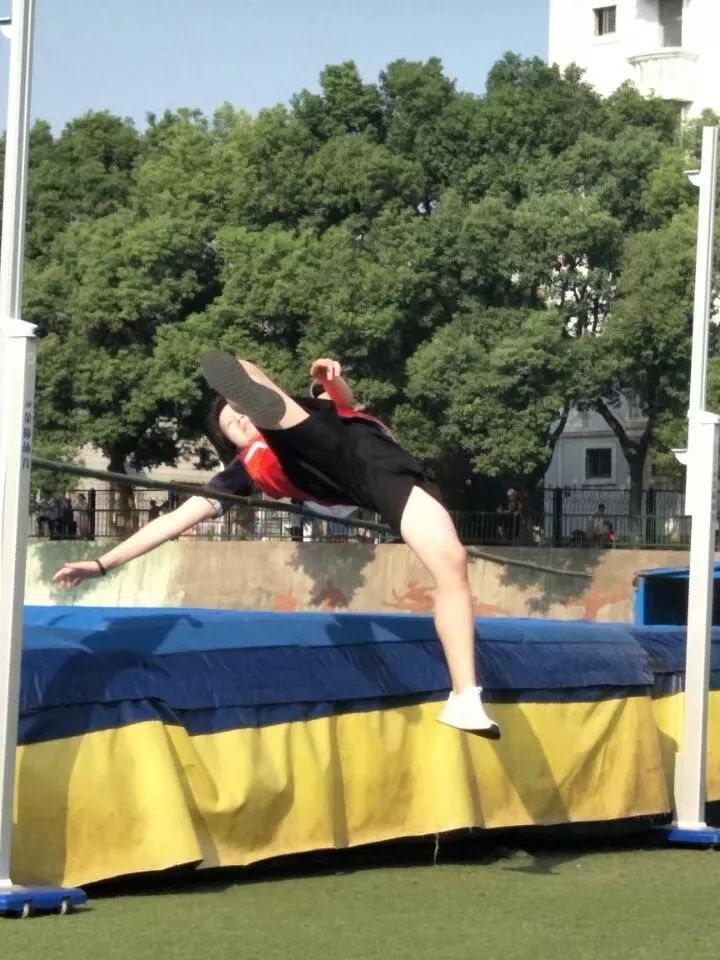 短暂的冲刺,奋力一跃,欢呼声响起。章婷成功越过1.32米的标杆,这是她第二次参加女子跳高项目,也是她第二次摘得第一名的桂冠。