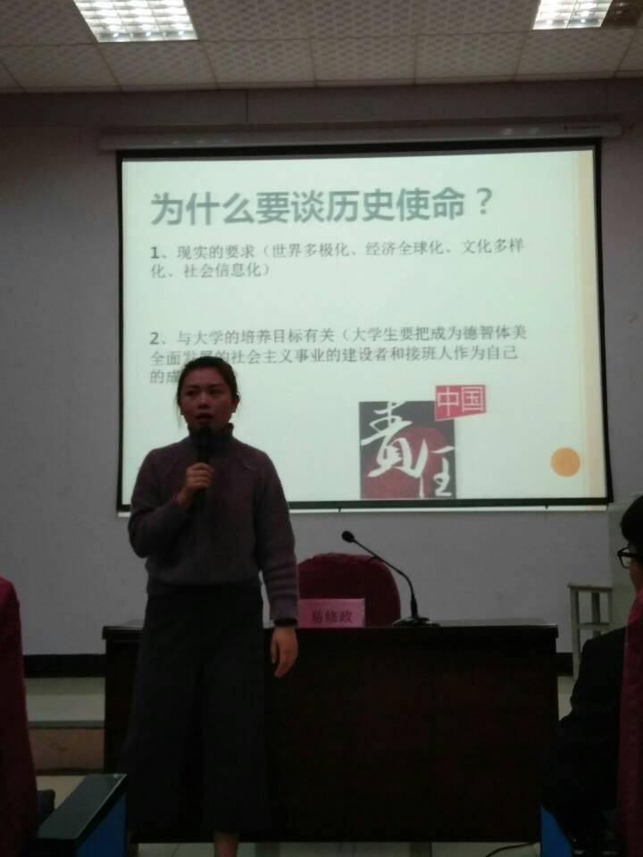 “知使命,立担当”,马克思学院易修政老师带领所有新生团干直面“责任”二字。“什么是历史使命?”“为什么要承担历史使命?”“怎样承担历史使命?”三大问题循序渐进,引导团干成员理解自己的使命与担当。
