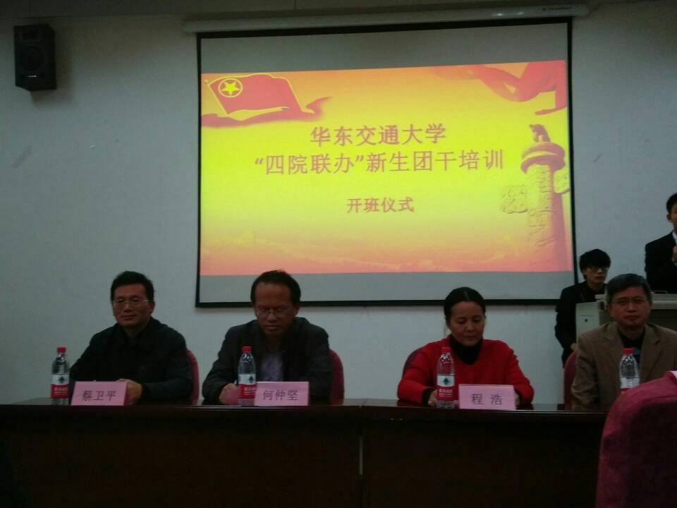 10月31日,我校“四院联合”新生团干培训开班典礼于机电学院报告厅隆重举行,我院党委副书记徐平生,机电、土建、运输学院等各院党委副书记出席。