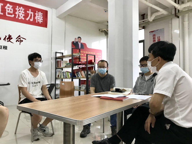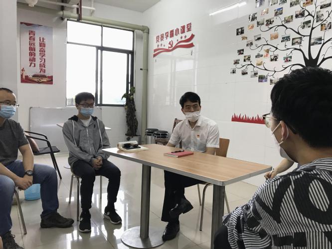 刘修财在校园生活、毕业设计、考研复试等方面与参加座谈的同学进行了深入交流。他了解到彭梓铖报考华东理工大学,目前在准备复试,刘修财给予积极的鼓励,积极面对复试。刘修财对参加补考的同学细心叮嘱,鼓励他们一定要积极准备通过考试,同时正视学业、就业问题。