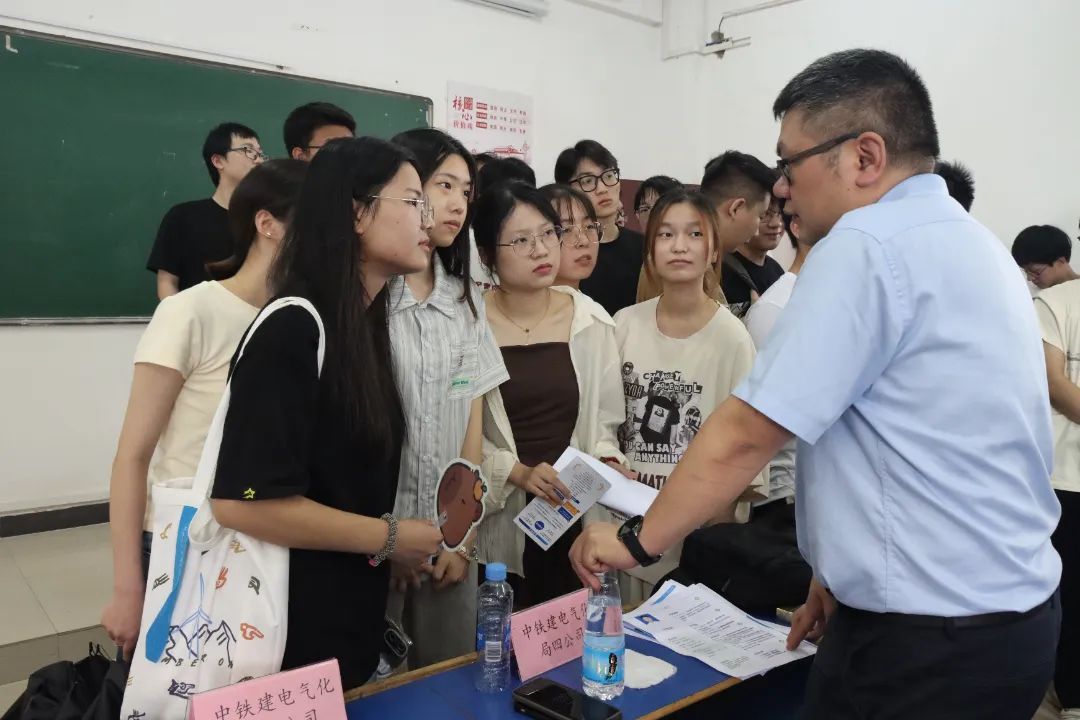 夏日酷暑难耐,学子们却激情不减。各大用人单位发放宣传材料、宣讲招聘,与参会的同学深入交流单位概况、岗位需求、工作内容、发展空间和薪资待遇等相关信息。现场气氛高涨,各用人单位代表在招聘会上热情耐心地回答了同学们所关心的各类问题。