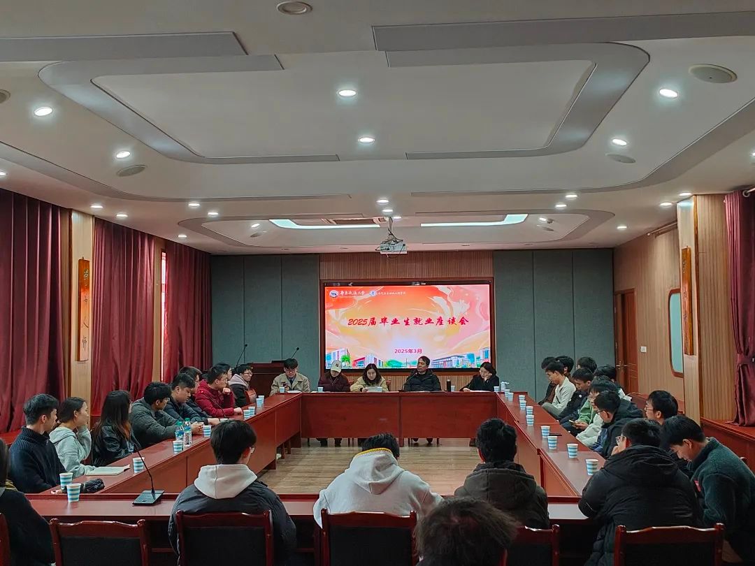 会上,刘修财结合自身多年的工作经历和体会,对当前就业形势进行了深入分析,指出在新经济形势下,毕业生就业面临的机遇和挑战,针对2025届毕业生目前的存在的就业难题和就业期望,给出了具体的建议和指导,帮助毕业生们更好地应对求职挑战。他叮嘱毕业生们要保持积极乐观的心态面对求职过程中的各种困难。同时,提醒毕业生们要把握好就业的关键节点,脚踏实地做好各项毕业准备,多向周围同学汲取经验,不断提升自己就业面试技能,同时顺应时代发展新要求,催生自身就业动力,通过多方共同努力,齐心协力解决就业问题。