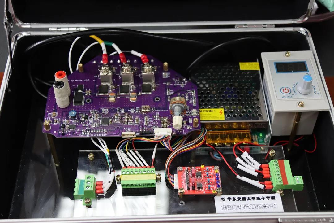 周佳新介绍了交流电机控制实验平台的使用方法及功能作用。这台仪器是面向教学与科研应用而设计,可便捷地实现数据交互、常见的电机控制方式等许多方面,还可以基于这台设备继续开发验证其他算法。他希望这台仪器能够帮助更多对科创感兴趣的同学,也祝愿母校不断开拓,桃李满天下。