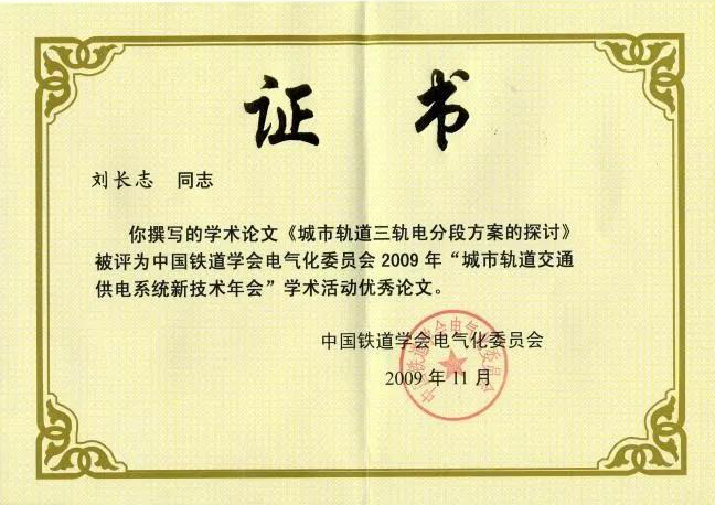刘长志从事铁道电气化专业20余年,挑战自我、孜孜以求、探索创新、敬业奉献的道路上,付出了所有的热忱和锲而不舍的努力,圆满完成一个个项目。在科学技术方面刘长志作出了巨大贡献。例如作为电通处项目主管总工兼项目总主持完成了长春客车厂10km地铁试验线工程,建成了世界上绝无仅有的多种电压制式、多种悬挂方式共存的直流系统试验线;他的论文之一《新型高铁牵引供电附加线悬挂系统研究》获集团公司2019年度科学技术一等奖、中国铁建股份公司2020年度科学技术一等奖,此项科学技术在国际上首次提出肩架本身满足绝缘距离要求的附加导线悬挂装置,在科技创新、挖潜提效、节支降耗方面成绩突出,经济效益显著,成果技术达到国际领先水平;《市郊(市县)快速城市轨道交通直流DC3000V牵引供电系统成套技术研究》已完成集团公司、股份公司科研结题验收工作,此项科技成果填补了国内空白,属于首创,有效推进了科技进步;作为四电院项目主管总工,主持了时速250公里土耳其安伊高铁项目,是国内第一条走出去高铁,《土耳其安伊高速铁路电气化设计成套技术研究》成果技术达到国际先进水平。刘长志曾获得铁道协会科技进步奖1项,中铁建科学技术奖项4项,中铁五院科学技术奖6项;获得铁道协会四优设计奖3项,中铁建四优设计奖项13项,中铁五院四优设计奖11项;主持完成13项国家专利;主持或参与国家铁路局、铁总、牵标委、铁建股份公司等国家和企业标准编制13项;在省部级主流刊物发表论文18篇。