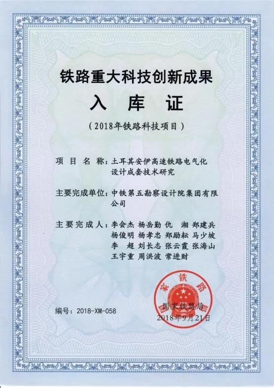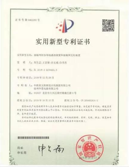 (9)《接触网附加导线悬挂装置和接触网支柱装置》2019年获得实用新型专利证书。