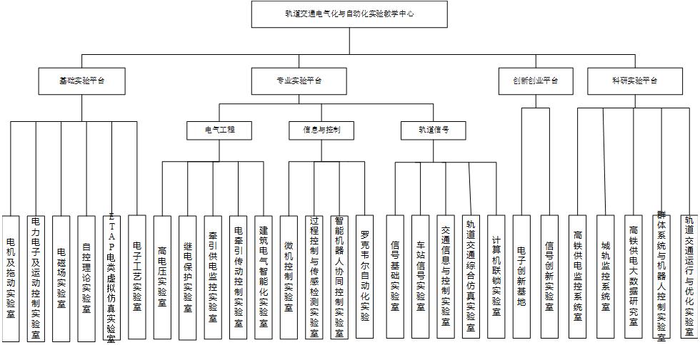 中心经历了三个重要发展阶段: 从办学之初到2002年,学院逐步建立了电工学、模拟数字电路、电机学、电磁场、高电压、电力牵引与传动控制、微机应用、自控原理、可编程控制器、继电保护、信号基础、交通控制等实验室,基本满足实验教学需求。 2002年,学院对实验室进行整合,成立电工电子实验中心、电气工程专业实验室、信息与控制专业实验室、轨道信号专业实验室。电工电子实验中心于2005年获评江西省第二批实验教学示范中心。 2018年,电工电子实验中心并入校基础实验中心,学院对专业实验室进行整合,形成现有规模。 中心现有教学与管理人员47人,其中专职管理人员10人,兼职实验教师37人。实验室总面积达3895平方米,仪器设备总值6443万。每年实验人时数达47682。可开出实验课程57门。 近5年来,中心承担国家级科研项目20项,省级教改教规项目23项,获省教学成果奖4项,学生学科竞赛获省级以上奖项153项。 中心组织机构见下图。 |